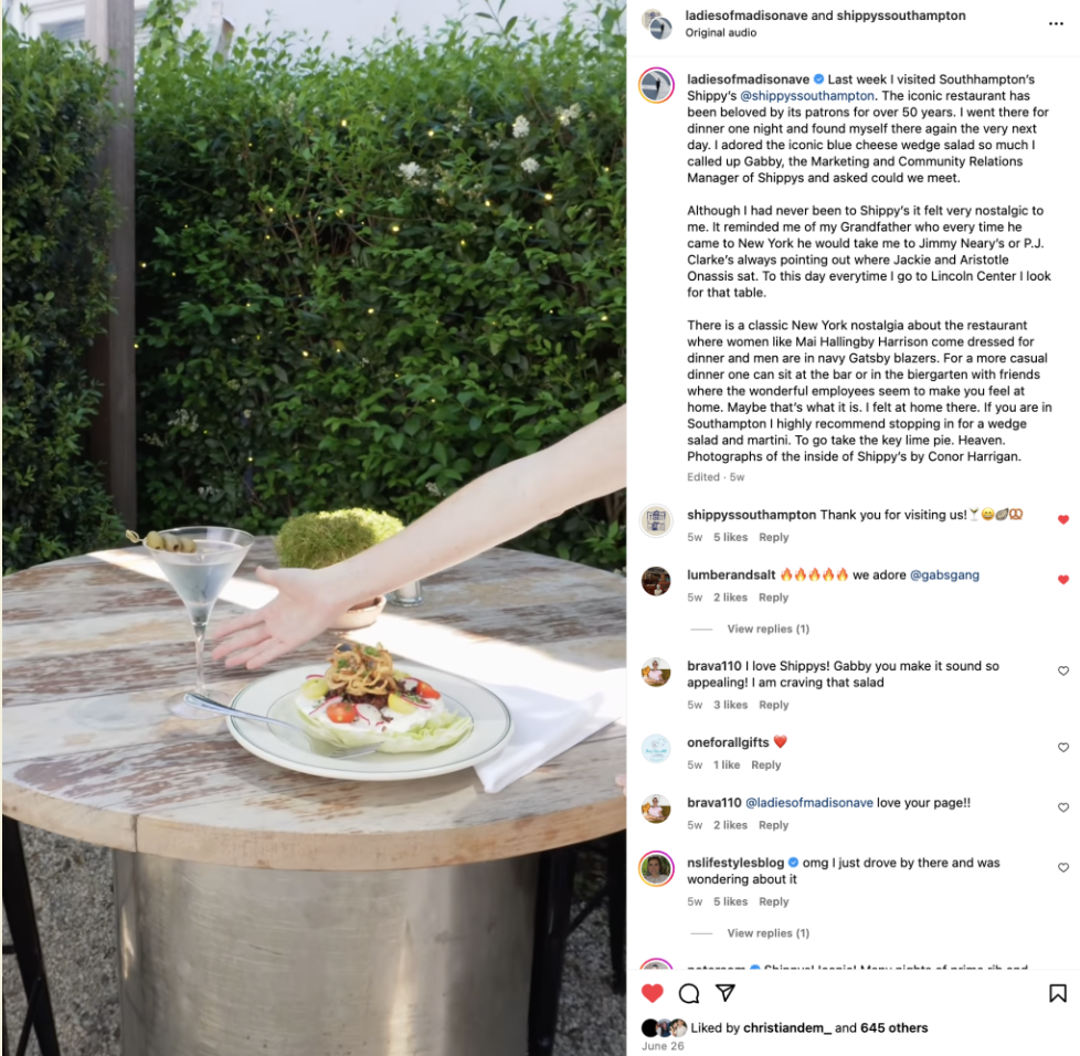 This was my main target, and is still a growing group. With the help of some strategic placements including filming the hit Bravo TV show Summer House – we hope this group continues to grow. The initiate to help it grow will be to work on more partnerships with a younger, fresher demographic and with slowly shifting operational style, restaurant culture and aesthetics towards becoming a true highlight in Hamptons culture and history.